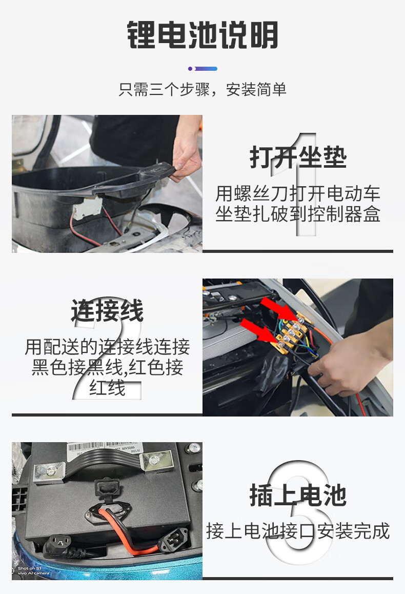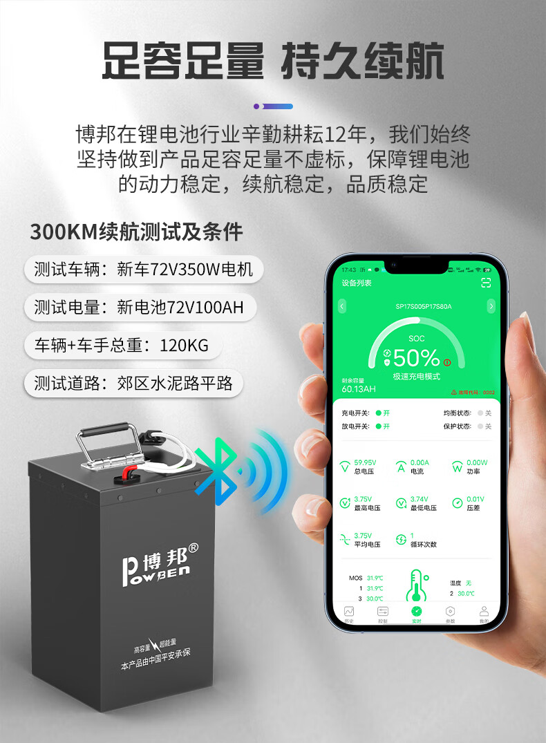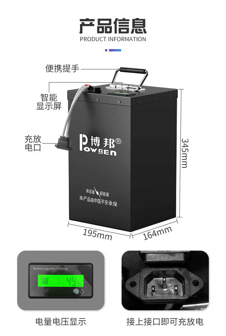 博邦锂电池新国标两轮三轮车电动车三元锂蓄电池外卖电瓶快递宁德时代 促销款48v20安
