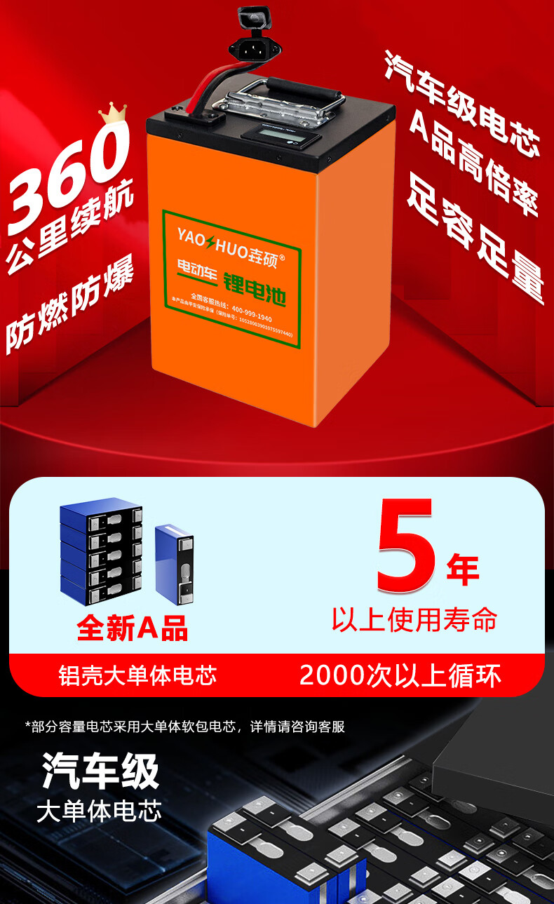 壵硕锂电池电动车外卖大容量快递三轮新能源宁德时代三元锂电摩大电瓶 72V120AH【约300-360公里】