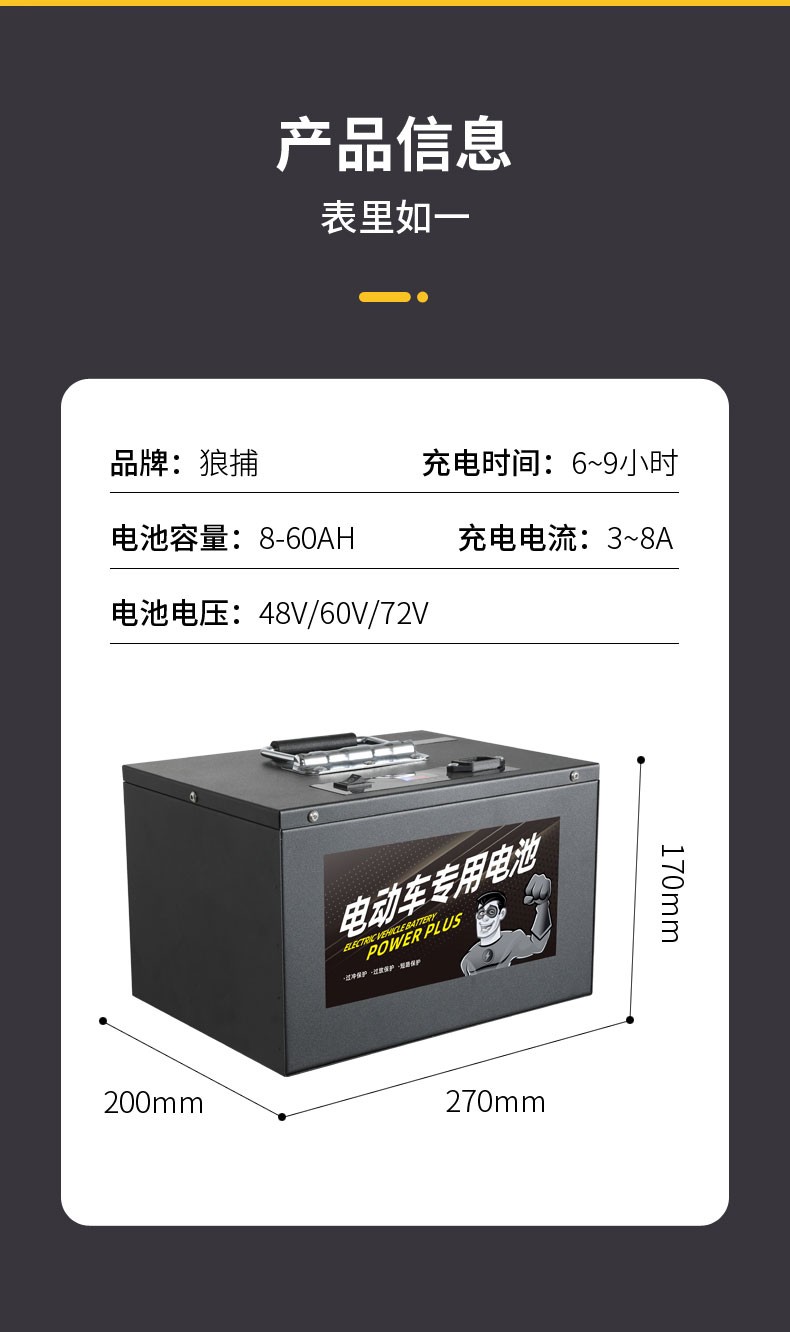 狼捕电动车锂电池60v外卖电瓶车电瓶电摩快递三轮车大容量三元 48V15Ah(国标2轮参考约30公里)
