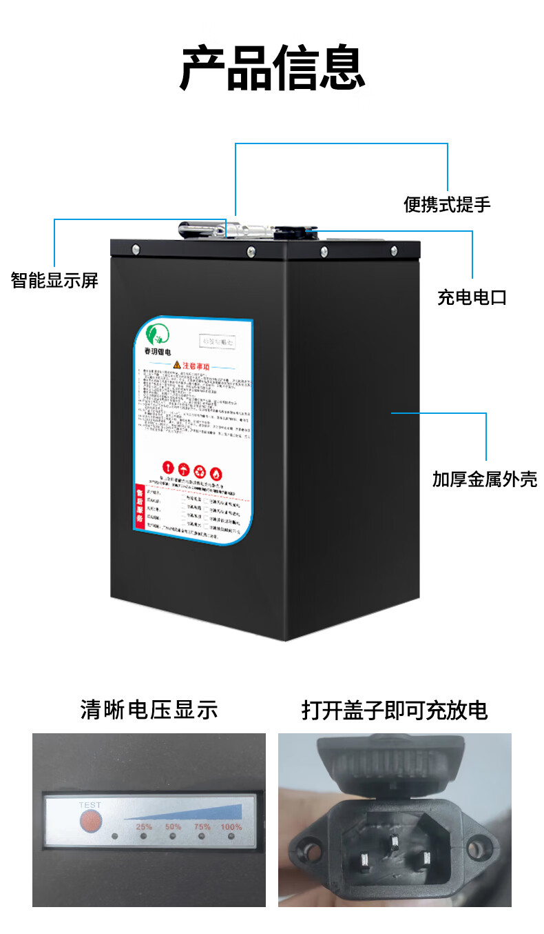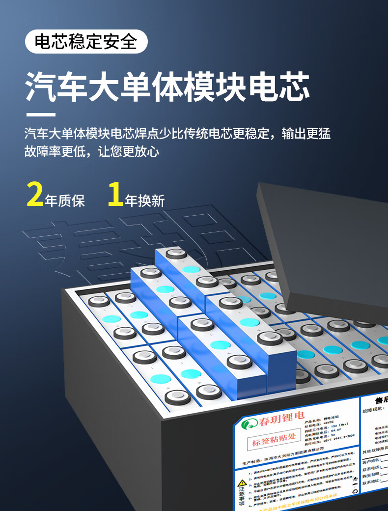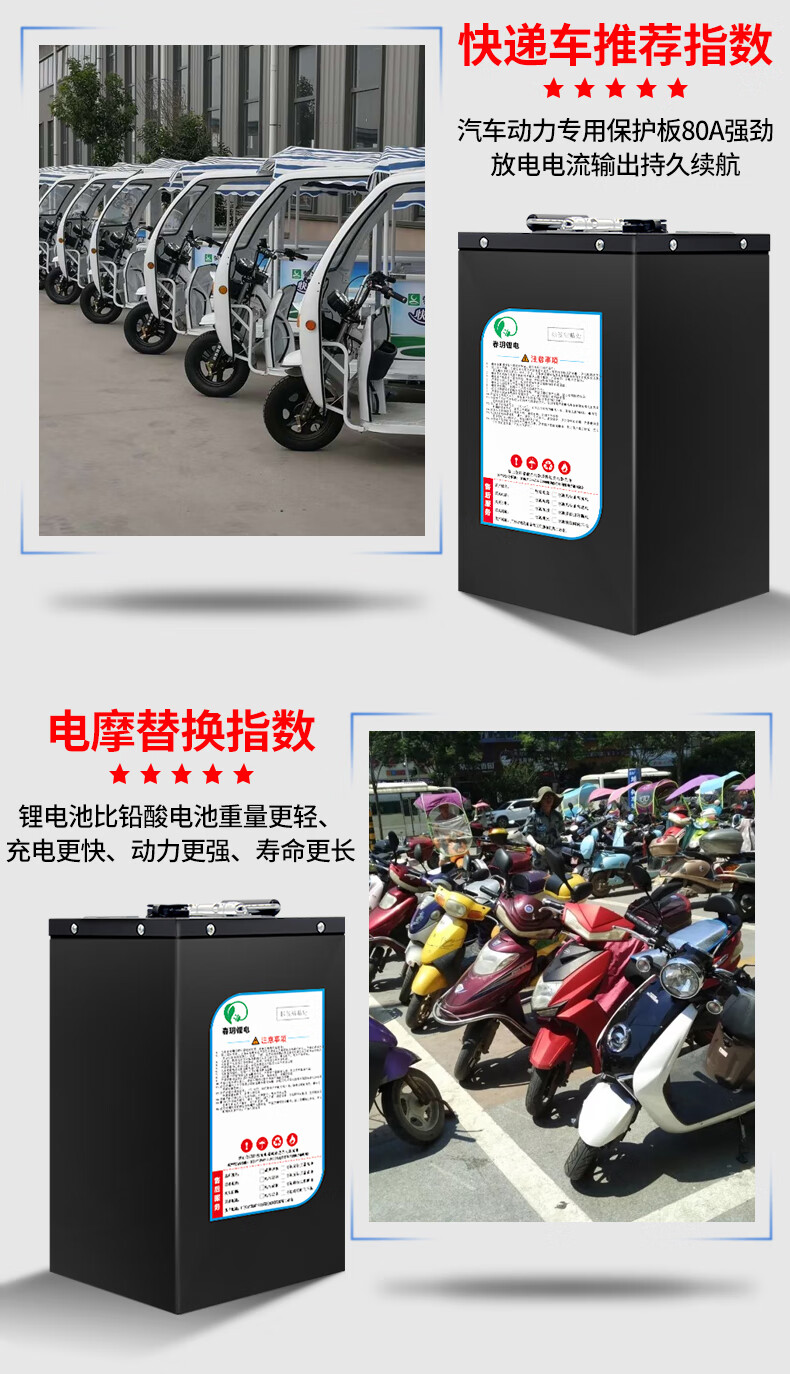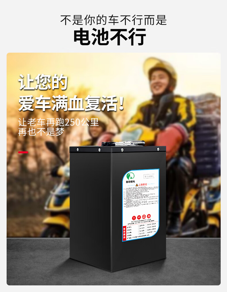 春玥锂电池72V三轮电车48V大容量磷酸铁锂电池60V电摩外卖铝电瓶100安 48V15Ah