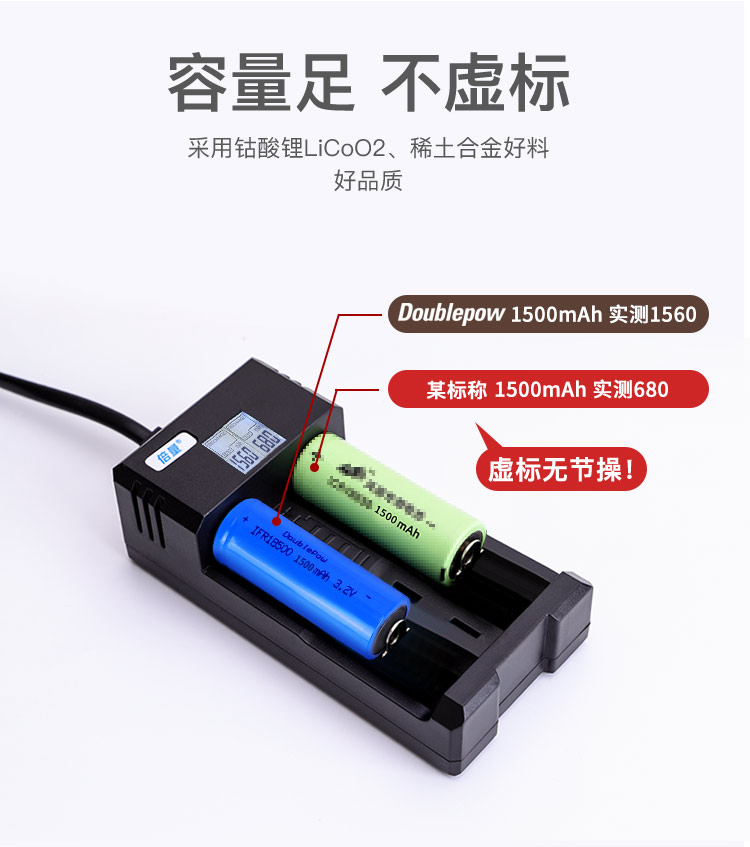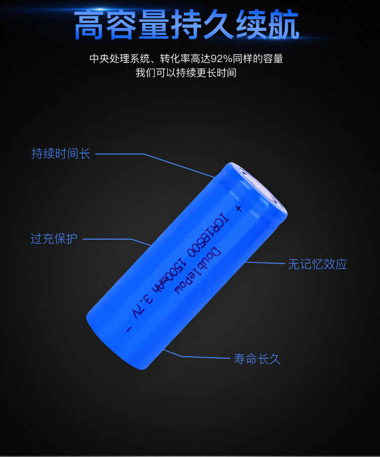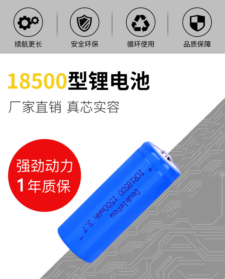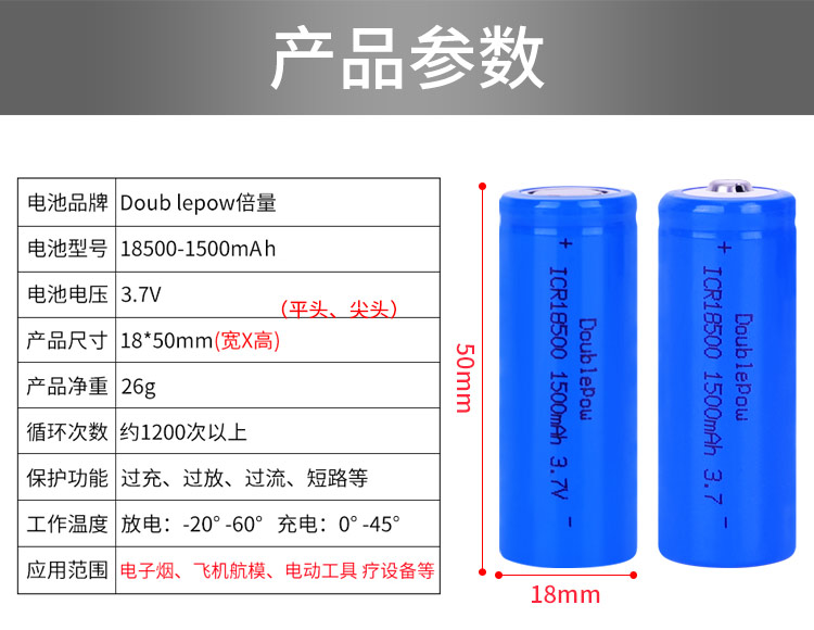倍量锂电池大容量3.7v充电电池锂离子套装 18500锂电池尖头1节装